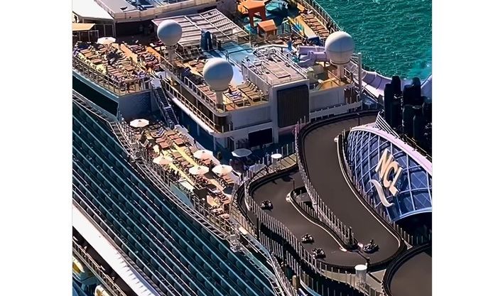 Στο κατάστρωμα του γιγαντιαίου κρουαζιερόπλοιου «Norwegian viva» λειτουργεί πίστα για χρήση από μονοθέσια αυτοκίνητα και έχει καταπλεύσει δύο φορές στο λιμάνι του Βόλου.