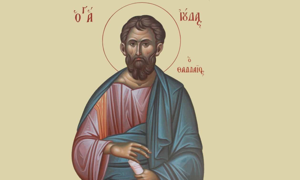 Ο Απόστολος Ιούδας έφερε και την προσωνυμία Θαδδαίος ή Λεββαίος. Η ζωή του κοντά στο Χριστό ήταν παρόμοια με των άλλων Αποστόλων. Μετά την Πεντηκοστή, αφού εργάστηκε για λίγο στην Εκκλησία των Ιεροσολύμων, κήρυξε το Ευαγγέλιο στη Μεσοποταμία ανάμεσα σε πολλούς κινδύνους. Αλλά ο Ιούδας, άξιος Απόστολος του Χριστού, γεμάτος αυταπάρνηση, μαρτύρησε τελικά στην Έδεσσα. Στην Καινή Διαθήκη, έχουμε και μια Καθολική Επιστολή του Ιούδα, που είναι σύντομη, αλλά γεμάτη μηνύματα αληθινής ζωής.