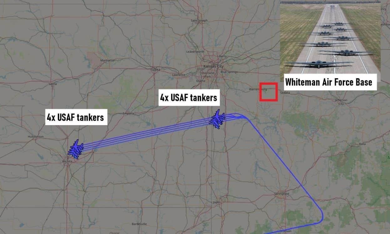Τώρα, σύμφωνα με νεότερες πληροφορίες, στρατηγικά βομβαρδιστικά stealth B-2 απογειώνονται από τη βάση τους στις ΗΠΑ Πληροφορίες έχουν διαρρεύσει στο διαδίκτυο ότι στρατηγικά βομβαρδιστικά stealth B-2 έχουν απογειωθεί από τη βάση τους στις Ηνωμένες Πολιτείες στο Μιζούρι. Οκτώ αεροσκάφη τάνκερ πετούν επίσης προς την ίδια κατεύθυνση με τα αεροσκάφη stealth.