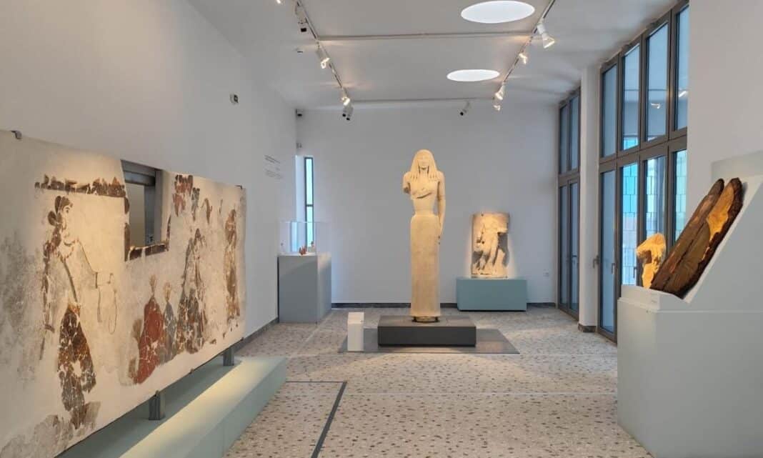 Κεντρικό και εμβληματικό έκθεμα του ανανεωμένου Μουσείου είναι η «Κόρη της Θήρας», το αρχαϊκό άγαλμα ύψους 2,48 μ., από ναξιακό μάρμαρο, που ανακαλύφθηκε, το 2000, στη Σελλάδα, την νεκρόπολη της Αρχαίας Θήρας. Το σπουδαίο αυτό και σχεδόν ακέραιο εύρημα παρέμενε επίσης αθέατο και μακριά από το κοινό επί 22 χρόνια, έως το φθινόπωρο του 2022, όταν και προχωρήσαμε για πρώτη φορά στην προσωρινή παρουσίασή της στο υπό ανακαίνιση Μουσείο. Σήμερα, το εμβληματικό άγαλμα της Κόρης εμφανίζεται πλέον στη μόνιμη θέση του, προστατευμένο από αντισεισμική βάση, η οποία σχεδιάστηκε με όλες τις σύγχρονες προδιαγραφές από το εργαστήριο στατικής μηχανικής του Εθνικού Μετσόβειου Πολυτεχνείου και εφαρμόστηκε στο γλυπτό από την Εφορεία Αρχαιοτήτων Κυκλάδων στο Εργαστήριο Συντήρησης των Μουσείου Ακρόπολης, ώστε η Κόρη να μπορεί να στέκει ασφαλής αλλά και ελεύθερη αναδεικνύοντας πλήρως το αρχαϊκό της κάλλος.