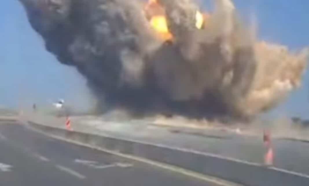 Όπως φαίνεται και στο βίντεο ο πύραυλος πέφτει λίγο πιο δίπλα από τον κεντρικό δρόμο προκαλώντας ζημιές μικρής έκτασης στις βιομηχανικές εγκαταστάσεις της περιοχής. Μεμιάς, η περιοχή «πνίγεται» από καπνούς.