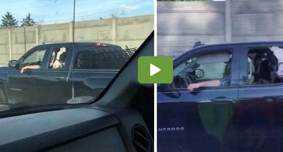 Απλά φανταστείτε την έκπληξή του ενώ οδηγούσε να γυρίζει το κεφάλι και να βλέπει στο διπλανό αυτοκίνητο μια αγελάδα να κάθετε στην πίσω θέση και μάλιστα να βγάζει το κεφάλι από το παράθυρο.