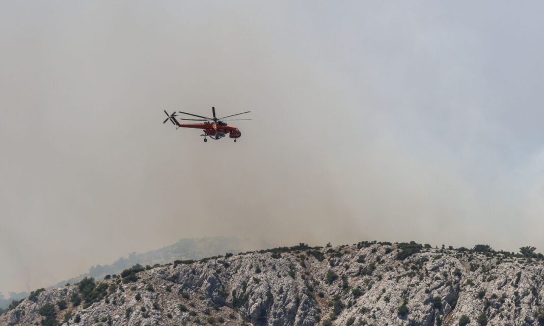 Με το πρώτο φως της μέρας, 8 εναέρια μέσα (2 αεροσκάφη και 6 ελικόπτερα) πραγματοποιούν ρίψεις νερού, ενώ, για την αεροπυρόσβεση έχουν διατεθεί συνολικά για όλη τη μέρα 4 αεροσκάφη και 14 ελικόπτερα τα οποία θα επιχειρούν περιοδικά