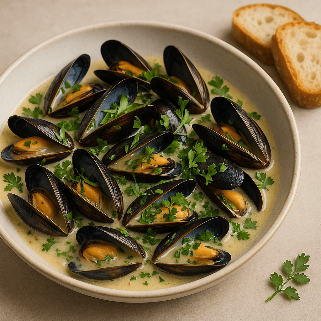 Τα αχνιστά μύδια είναι ένα από τα πιο χαρακτηριστικά πιάτα της μεσογειακής και γαλλικής κουζίνας, συνδυάζοντας τη φρεσκάδα της θάλασσας με την απλότητα της προετοιμασίας. Σε αυτή τη συνταγή, η προσθήκη του εστραγκόν – ενός αρωματικού βοτάνου με διακριτική, γλυκιά και ελαφρώς ανισώδη γεύση – προσδίδει ένα ιδιαίτερο άγγιγμα φινέτσας. Το αποτέλεσμα είναι ένα φίνο πιάτο, αρωματικό και πλούσιο, ιδανικό για να συνοδεύσει ένα ποτήρι δροσερό λευκό κρασί και καλή παρέα.