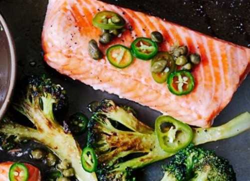 Πεντανόστιμος σολομός με ψητό μπρόκολο και βινεγκρέτ κάπαρης