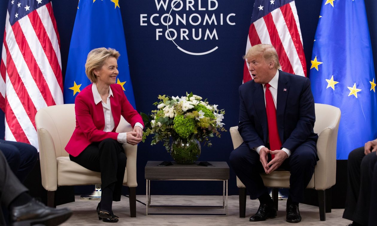 Η επικεφαλής της Ευρωπαϊκής Επιτροπής, Ούρσουλα φον ντερ Λάιεν, ανέφερε στους ηγέτες της Ένωσης κεκλεισμένων των θυρών ότι ήταν βέβαιη πως θα μπορούσε να επιτευχθεί συμφωνία πριν από την προθεσμία για να αποφευχθεί μία οικονομικά επιζήμια κλιμάκωση, σύμφωνα με άτομα που γνωρίζουν το θέμα, τα οποία επικαλείται το Bloomberg.