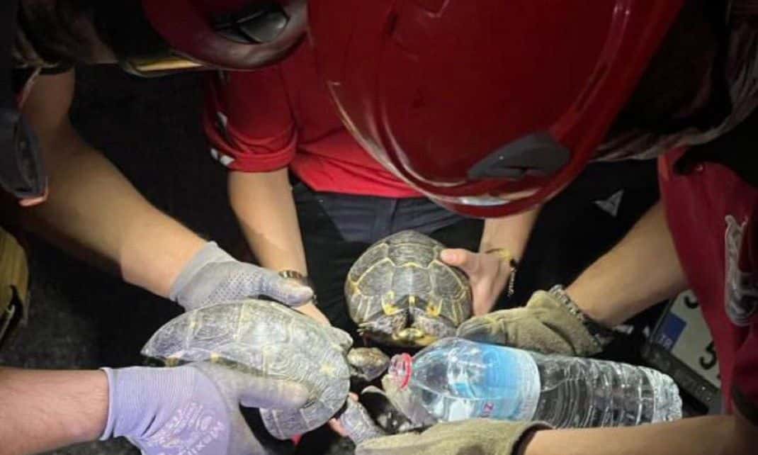 Μια εξ αυτών είναι η εικόνα πυροσβεστών να δίνουν νερό σε χελώνες στις πυρόπληκτες περιοχές.