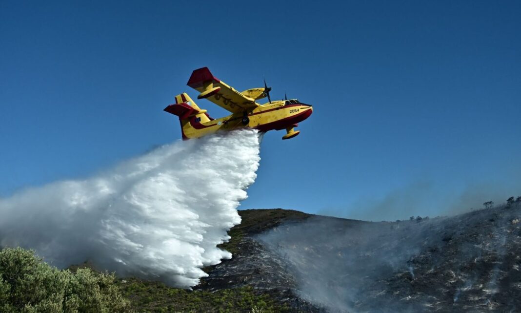 Στο σημείο επιχειρούν πυροσβεστικές δυνάμεις με επίγεια και εναέρια μέσα