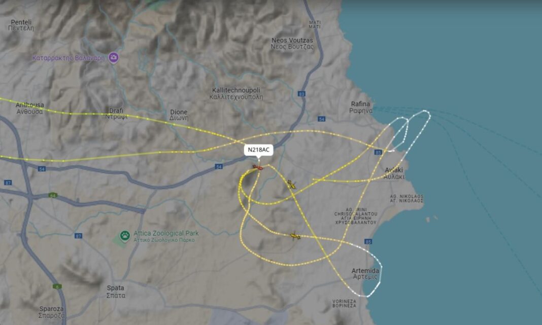 Η μάχη των εναέριων μέσων για την κατάσβεση της μεγάλης πυρκαγιάς που ξέσπασε στην περιοχή ανάμεσα στο Πικέρμι όπως φαίνεται μέσα από το Flight Radar
