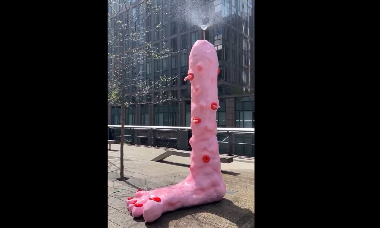 Το «Foot Fountain», μια νέα καλλιτεχνική εγκατάσταση ύψους 3 μέτρων, στήθηκε πρόσφατα στο High Line Park του Μανχάταν της Νέας Υόρκης. Πρόκειται για ένα ροζ πόδι –κομμένο γύρω από το γόνατο– που είναι γεμάτο με γλώσσες και καταλήγει σε ένα τεράστιο πόδι με κόκκινα νύχια.