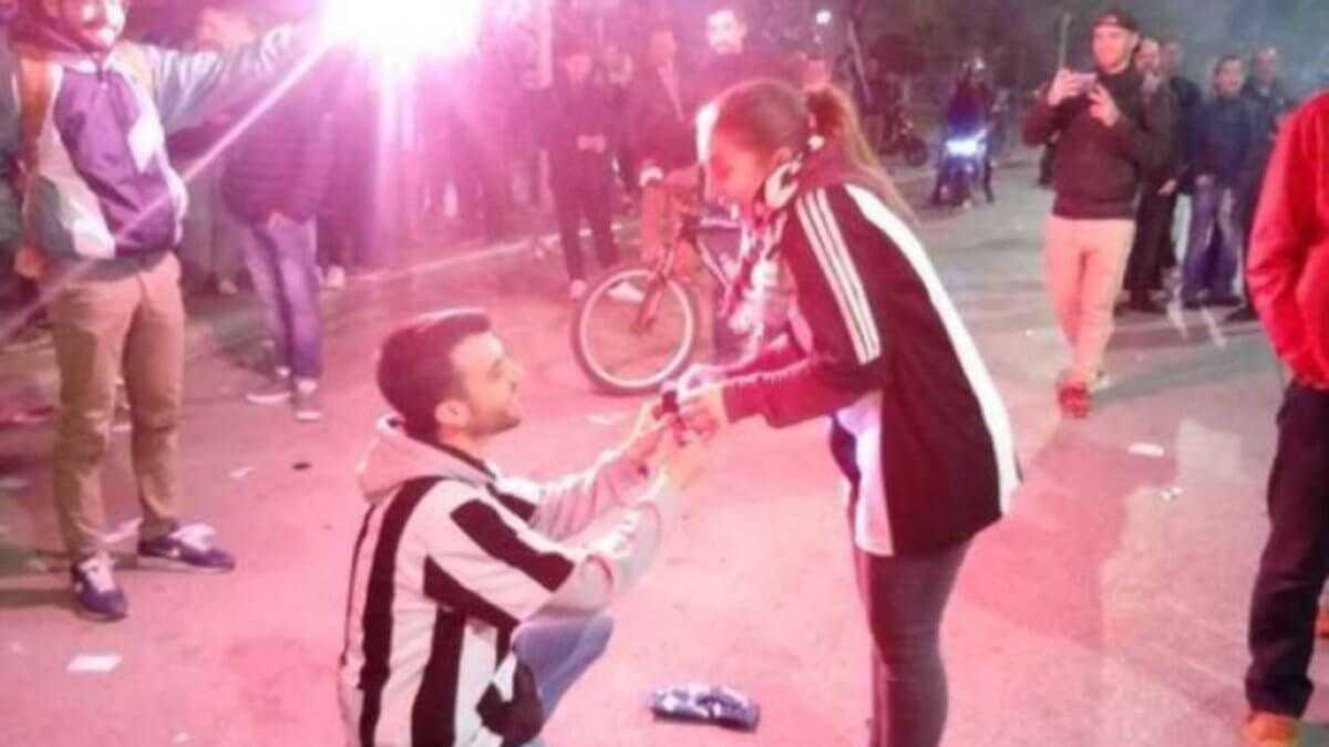 Ένα “τρελός” ΠΑΟΚτσής είχε υποσχεθεί στην κοπέλα του ότι θα την παντρευτεί όταν ο ΠΑΟΚ πάρει το πρωτάθλημα και έκανε το λόγο του πράξη κατά τη διάρκεια της φιέστας, γονατίζοντας για την πρόταση γάμου.