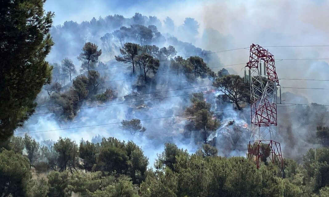 Καπνός υψώνεται κατά τη διάρκεια πυρκαγιάς κοντά στη Μασσαλία, στη νότια Γαλλία, την Τρίτη 8 Ιουλίου 2025.