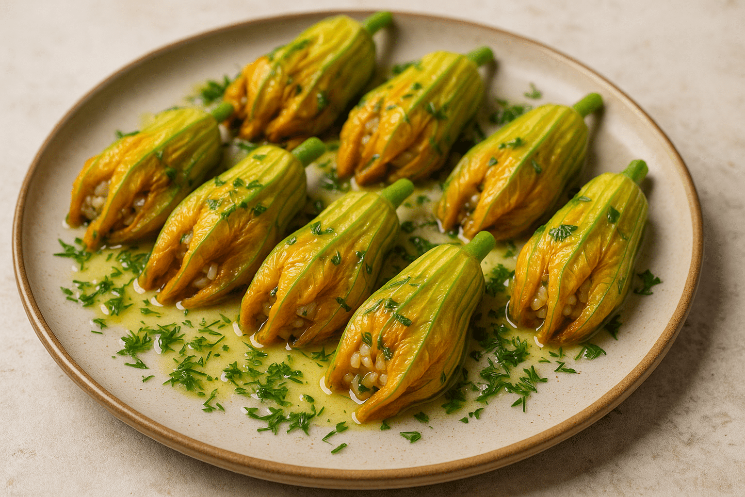 Κολοκυθοανθοί γεμιστοί με ρύζι και μυρωδικά