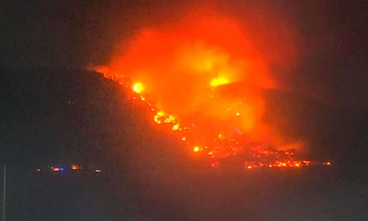 Σύμφωνα με την Πυροσβεστική Υπηρεσία, η φωτιά δεν είναι κοντά σε σπίτια, ωστόσο, σύμφωνα με πληροφορίες, έχει καταστραφεί ένα beach bar.