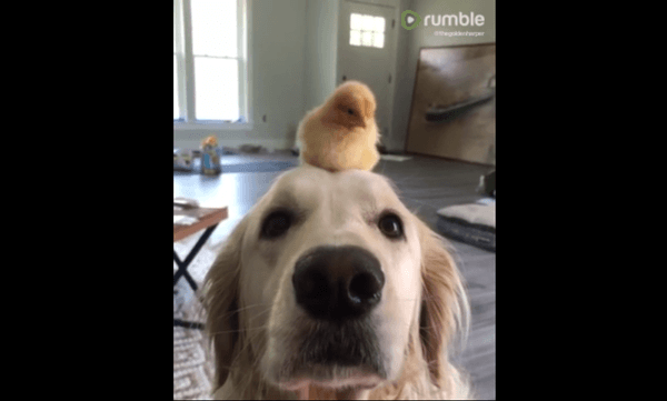 Στο βίντεο παρακάτω θα δείτε ένα μικρό κοτοπουλάκι να «ξεκουράζεται» επάνω στο κεφάλι ενός σκύλου. Αυτό το Golden Retriever έχει γίνει ο καλύτερος φίλος του μικρούλη και πραγματικά οι δυο τους είναι αξιολάτρευτοι. Το βίντεο έχει γίνει viral στο διαδίκτυο με πολλούς χρήστες να το κοινοποιούν κάνοντάς το ανάρπαστο.