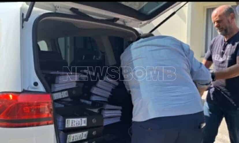 Όπως φαίνεται από τις αποκλειστικές φωτογραφίες που εξασφάλισε το Newsbomb.gr άνδρες της Αστυνομίας μαζεύουν τα αρχεία από την Ιατροδικαστική Υπηρεσία Πάτρας και τα αποθηκεύουν σε αυτοκίνητα.