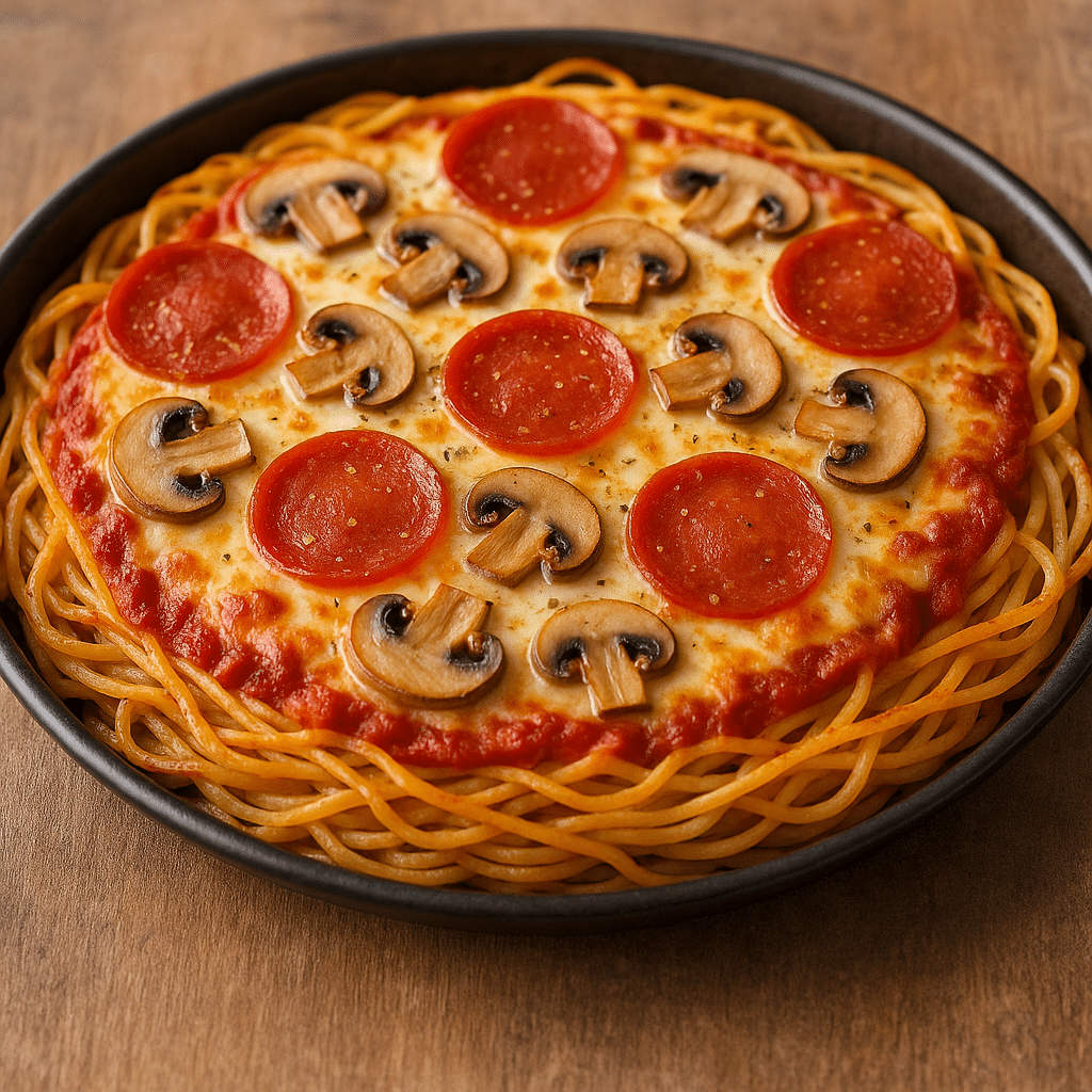 Αναζητάς έναν πρωτότυπο τρόπο να αξιοποιήσεις τα μακαρόνια που περίσσεψαν ή απλώς θέλεις να δοκιμάσεις κάτι εντελώς διαφορετικό; Η πίτσα με βάση από σπαγγέτι είναι η απάντηση! Ιδανική για παιδικά πάρτι, γρήγορο μεσημεριανό ή ένα γεύμα με twist, αυτή η συνταγή παντρεύει την τραγανή υφή της πίτσας με την παρηγορητική γεύση της μακαρονάδας. Εύκολη, γρήγορη και απλά… ακαταμάχητη!