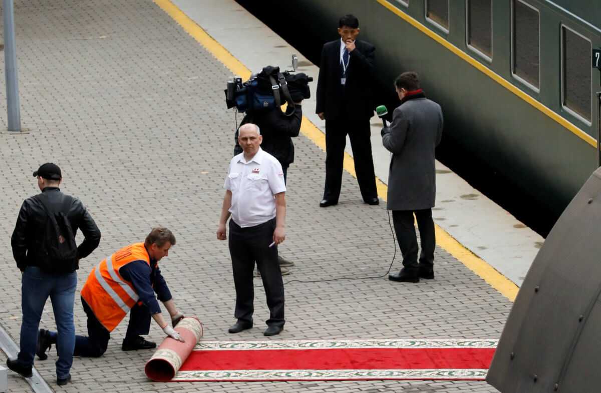 Η άφιξη του Κιμ στη Ρωσία για μια συνάντηση κορυφής με τον ρώσο ηγέτη Βλαντίμιρ Πούτιν μεταδόθηκε ζωντανά από τη ρωσική κρατική τηλεόραση. Ρώσοι αξιωματούχοι περίμεναν υπομονετικά καθώς το τρένο έκανε όπισθεν, όπως και δύο βορειοκορεάτες βοηθοί που κρατούσαν ράμπες τις οποίες στη συνέχεια τοποθέτησαν στο έδαφος για να γεφυρώσουν το κενό ανάμεσα στο τρένο και την αποβάθρα. Το τρένο του Κιμ κάνει όπισθεν