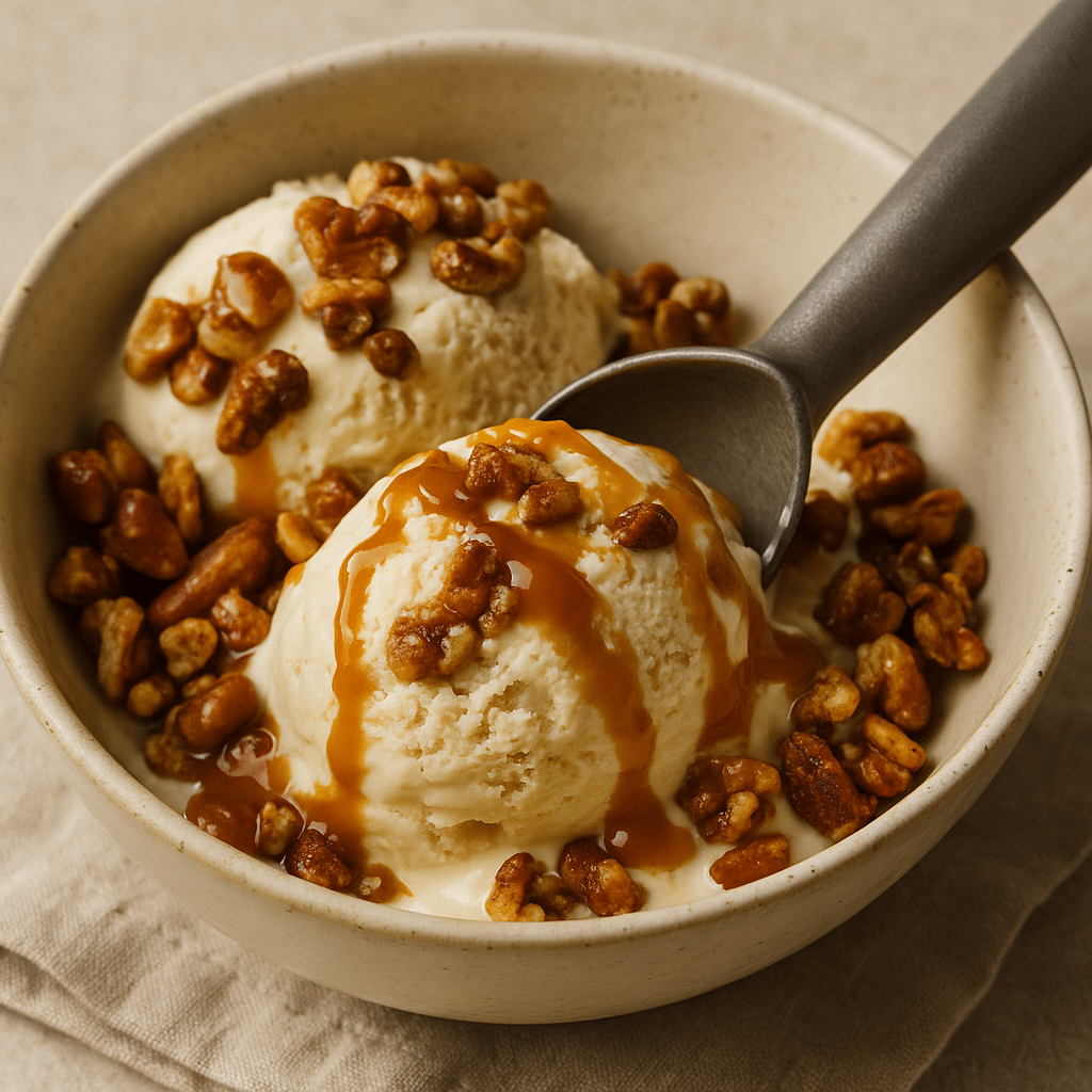 Αν λατρεύεις τη βελούδινη υφή του παγωτού αλλά και τις αντιθέσεις γεύσεων, τότε αυτό το παγωτό είναι για σένα. Η τραγανή έκρηξη από καραμελωμένους ξηρούς καρπούς συναντά την πλούσια, βουτυράτη αλατισμένη καραμέλα σε ένα γλυκό που συνδυάζει το εκλεπτυσμένο με το… παρηγορητικό. Το αποτέλεσμα; Μια κουταλιά γεμάτη ισορροπία – γλυκό, αλμυρό, τραγανό και βελούδινο.