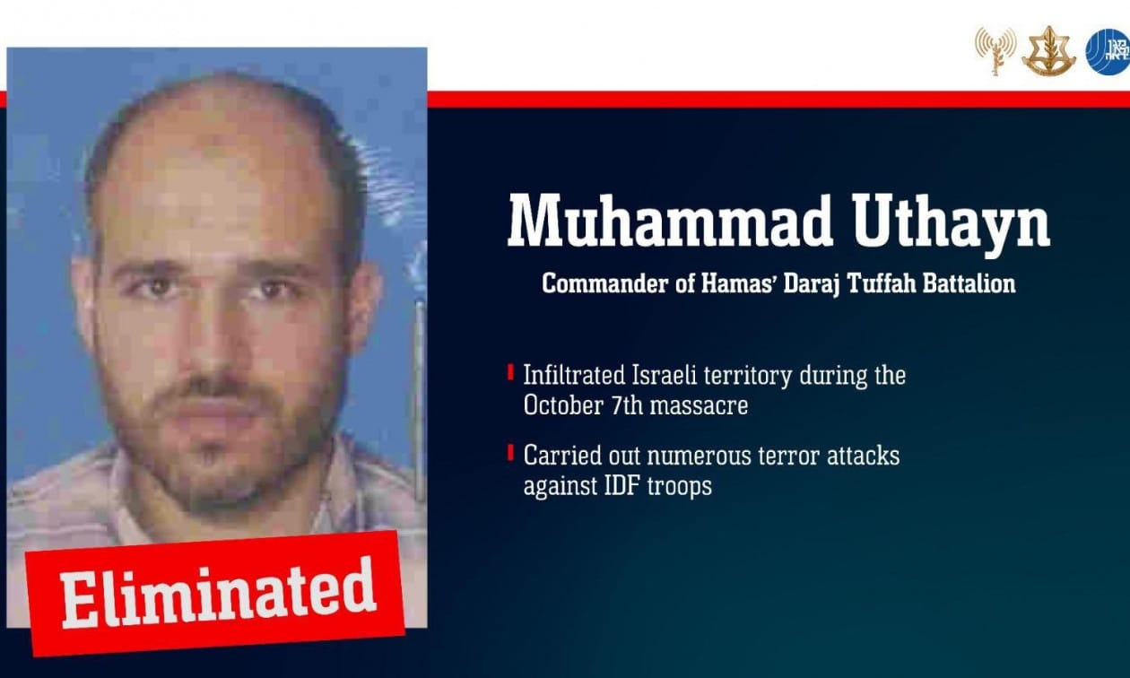 Ο Μουχάμαντ Ουτάιν, Διοικητής του Τάγματος Νταράτζ Τούφα της Χαμάς και ένας από τους δράστες της σφαγής της 7ης Οκτωβρίου, σκοτώθηκε στην περιοχή Νταράτζ Τούφα.