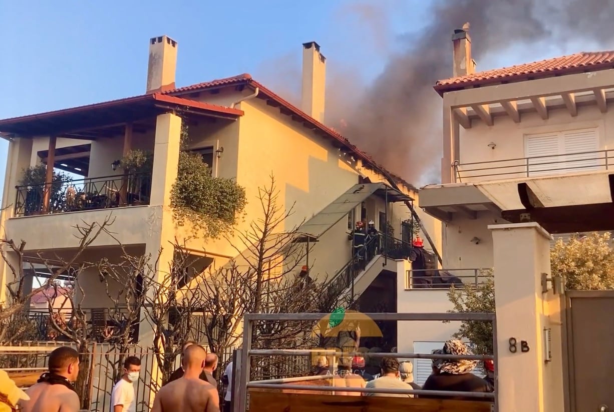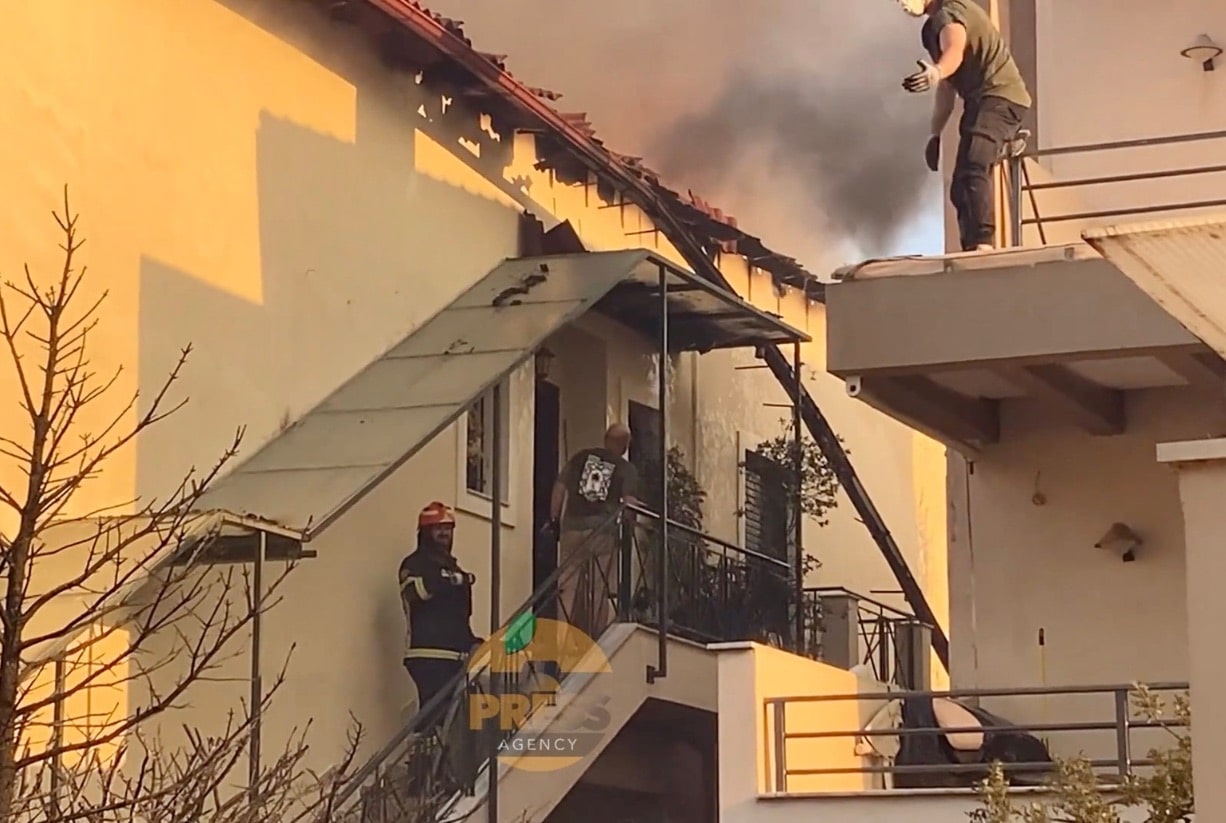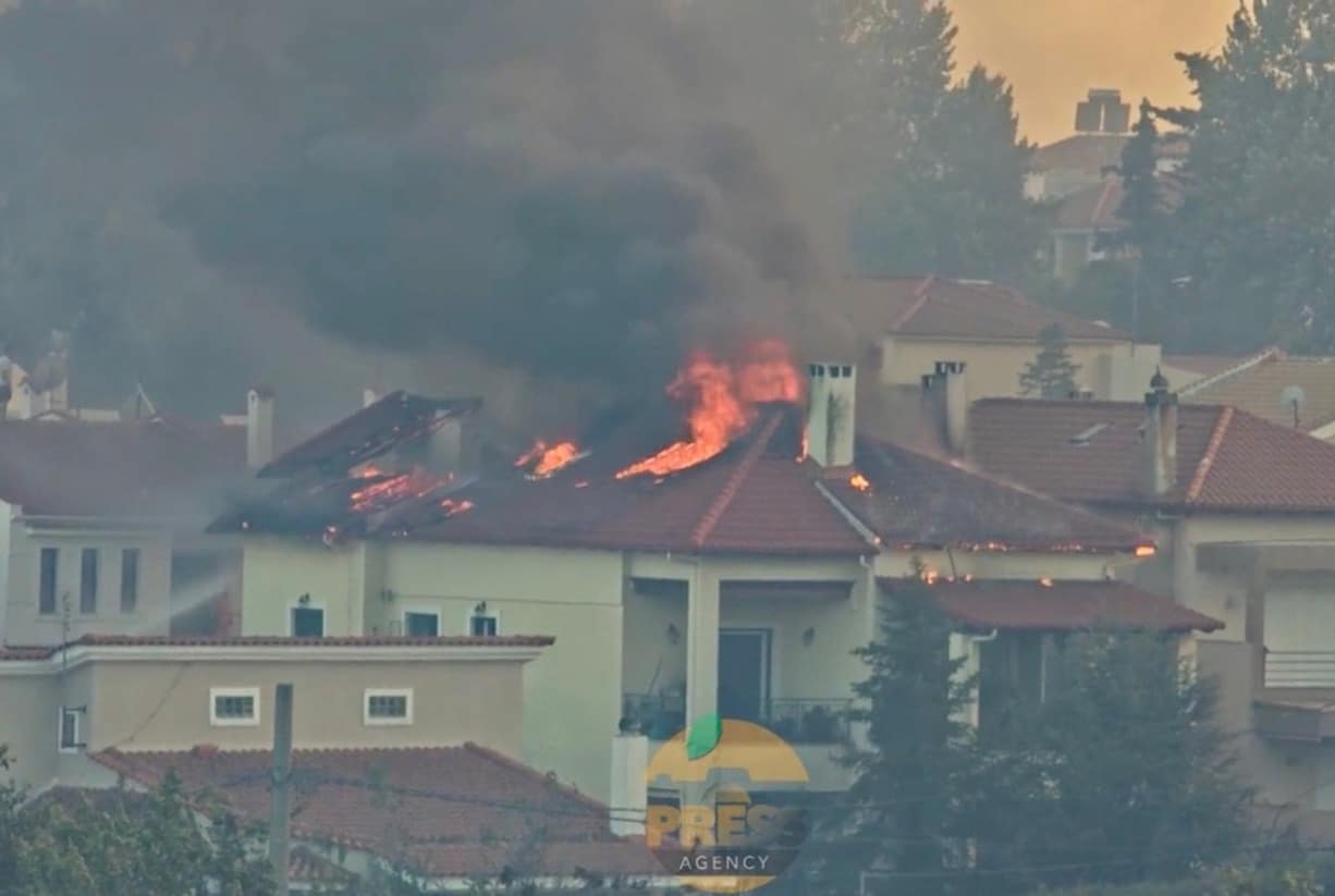 Η πυρκαγιά έχει αναπτύξει δυναμική κι έχει λάβει μεγάλες διαστάσεις λόγω των ισχυρών ανέμων που πνέουν, σπίτια έχουν υποστεί ζημιές και άλλα έχουν παραδοθεί στις φλόγες.