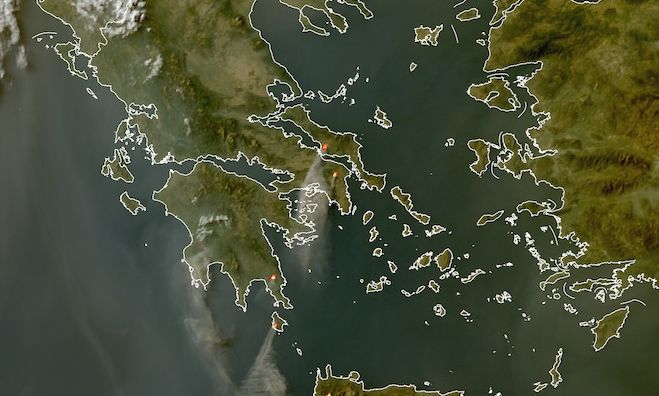 “Ορατές” από τον γεωστατικό δορυφόρο Meteosat-12 είναι οι πυρκαγιές που εκδηλώθηκαν νωρίτερα σήμερα, Σάββατο 26 Ιουλίου 2025, σε Εύβοια, Αττική, Μεσσηνία, Λακωνία, Κύθηρα και Κρήτη. Στην επόμενη δορυφορική εικόνα αποτυπώνεται ευδιάκριτα η μεγάλη διασπορά του καπνού από τα ενεργά αυτή τη στιγμή περιστατικά.
