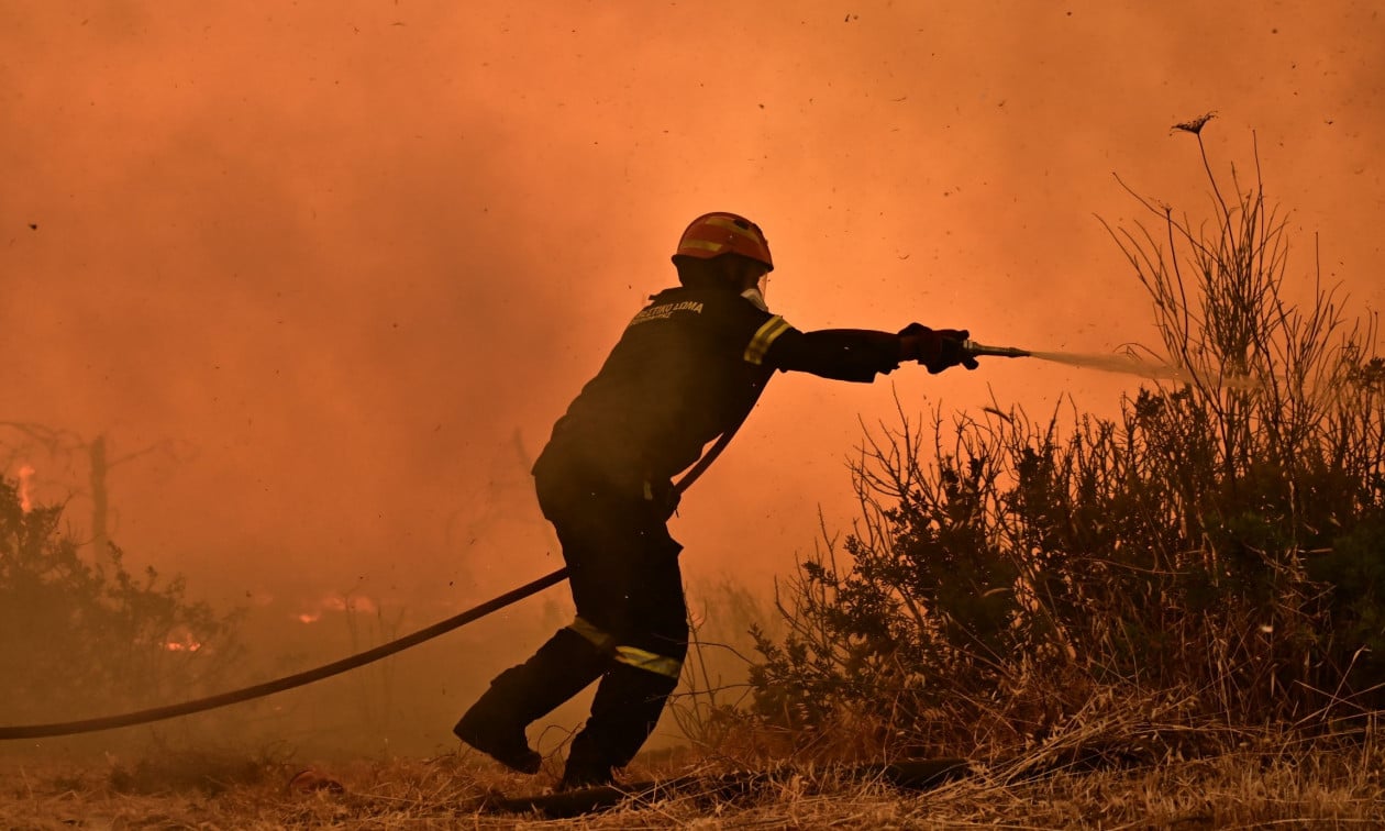 «Έχει καεί το μισό νησί», είπε χαρακτηριστικά, σημειώνοντας πως «κινδυνεύει μοναστήρι – αν δεν έρθουν εναέρια μέσα, θα καεί».
