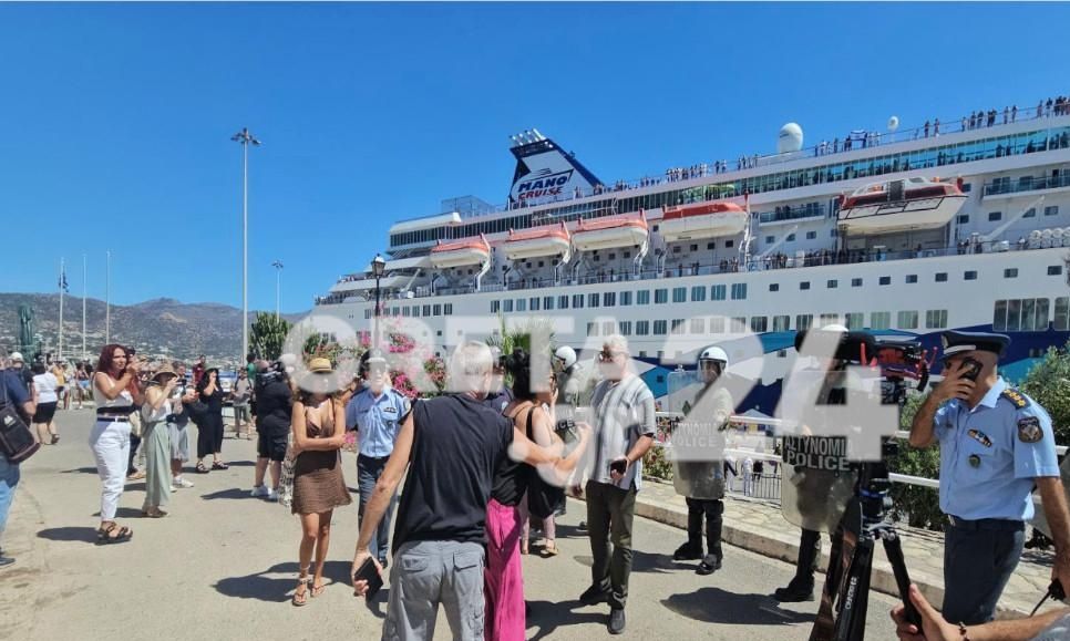Στις 11.30 το πρωί της Τρίτης 29 Ιουλίου, έφτασε στο λιμάνι του Αγίου Νικολάου το κρουαζιερόπλοιο «Crown Iris», με τους 1.500 Ισραηλινούς τουρίστες, την ώρα που πραγματοποιούνταν συγκέντρωση διαμαρτυρίας.