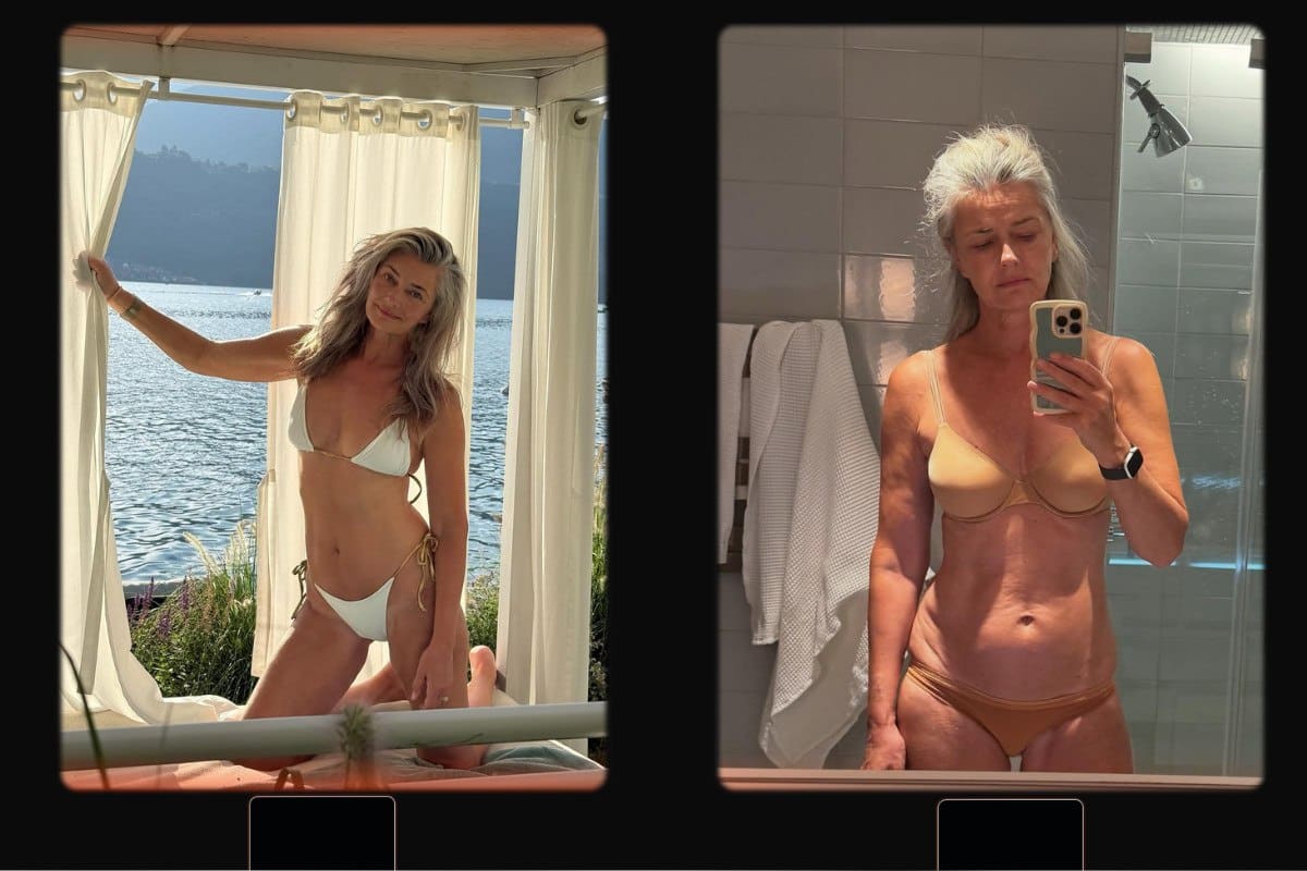 Η ίδια έγραψε: «Αυτή είμαι διακοπές – με ωραίο φωτισμό και πόζα. Και αυτή είμαι επίσης εγώ – στο σπίτι, χωρίς ειδικό φωτισμό, χωρίς πόζα. Και τις δύο τις αποδέχομαι».