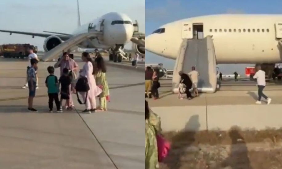 Οι επιβάτες στο αεροδρόμιο της Αττάλειας στη νότια Τουρκία εκκένωσαν το Boeing 777 της Turkish Airlines χρησιμοποιώντας τους διαδρόμους έκτακτης ανάγκης