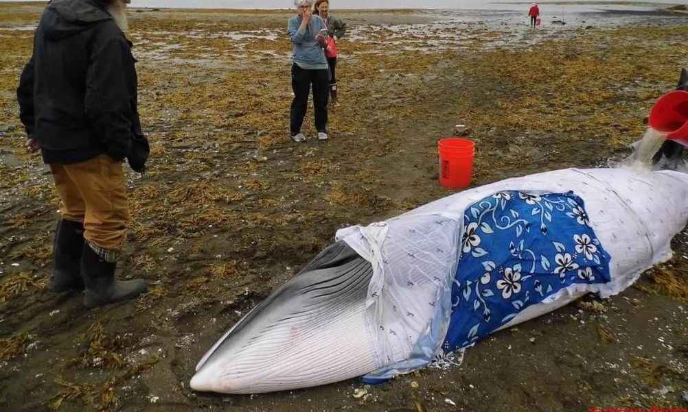 Οι ντόπιοι είχαν τυλίξει την φάλαινα με βρεγμένες πετσέτες, ενώ της έριχναν θαλασσινό νερό στην κοιλιά της