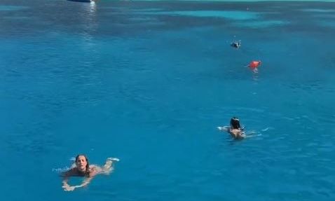 Σε βίντεο που αναρτήθηκε στο TikTok φαίνονται οι δύο γυναίκες μέσα στη θάλασσα όταν ξαφνικά εμφανίζεται ένα αγριογούρουνο να κολυμπάει και να κατευθύνεται προς εκείνες.