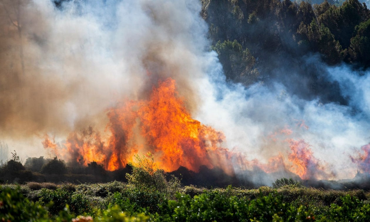 Η πυρκαγιά καίει δασική έκταση σε μικρή απόσταση από τη λουτρόπολη Ταρίφα