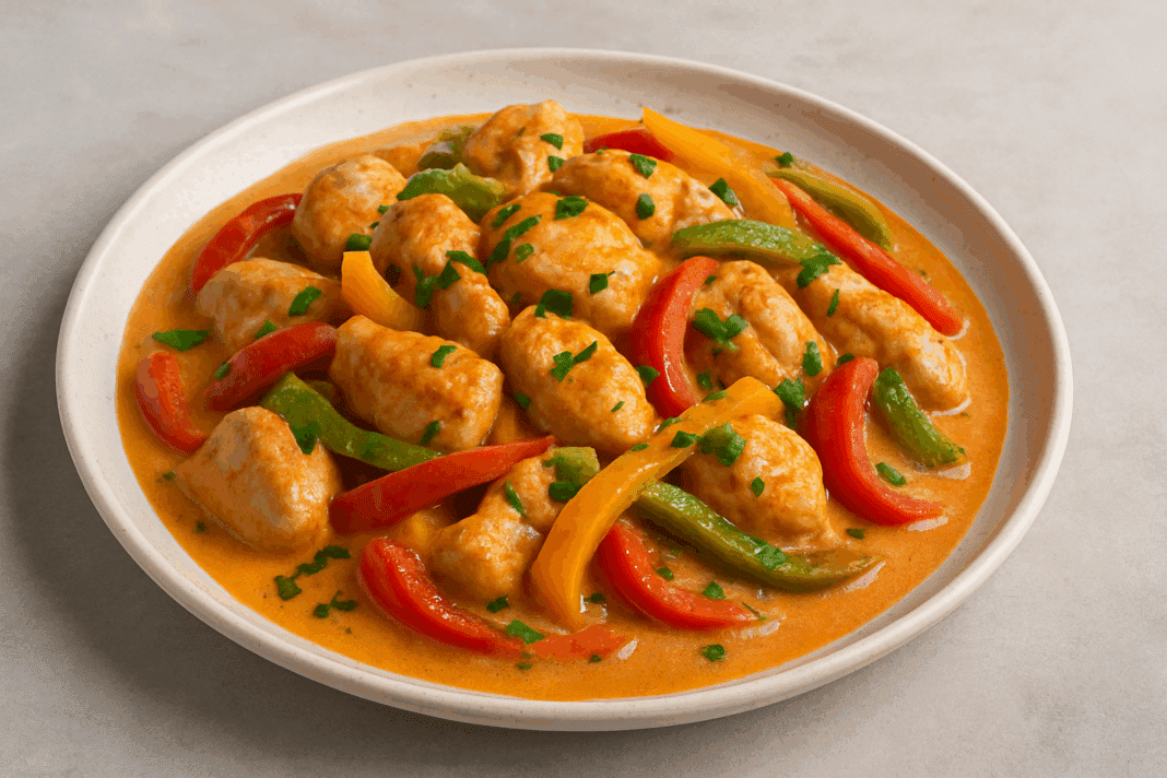 Κρεμώδες κοτόπουλο με πιπεριές σε σάλτσα γιαουρτιού
