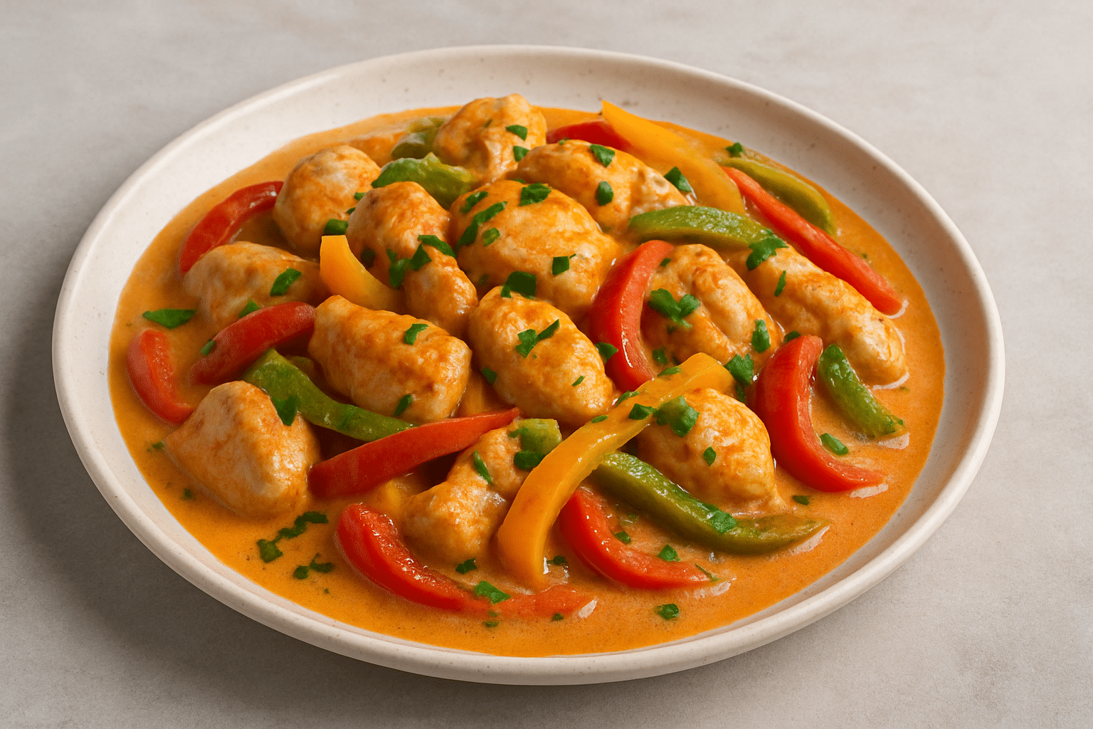 Αν ψάχνεις για ένα εύκολο, γευστικό και ελαφρύ πιάτο για κάθε εποχή, τότε αυτή η συνταγή είναι για σένα. Το κοτόπουλο μαγειρεύεται με χρωματιστές πιπεριές και καλύπτεται με μια βελούδινη σάλτσα γιαουρτιού που δίνει ένταση και φρεσκάδα. Ιδανικό τόσο για καθημερινό τραπέζι όσο και για πιο ιδιαίτερες περιστάσεις.