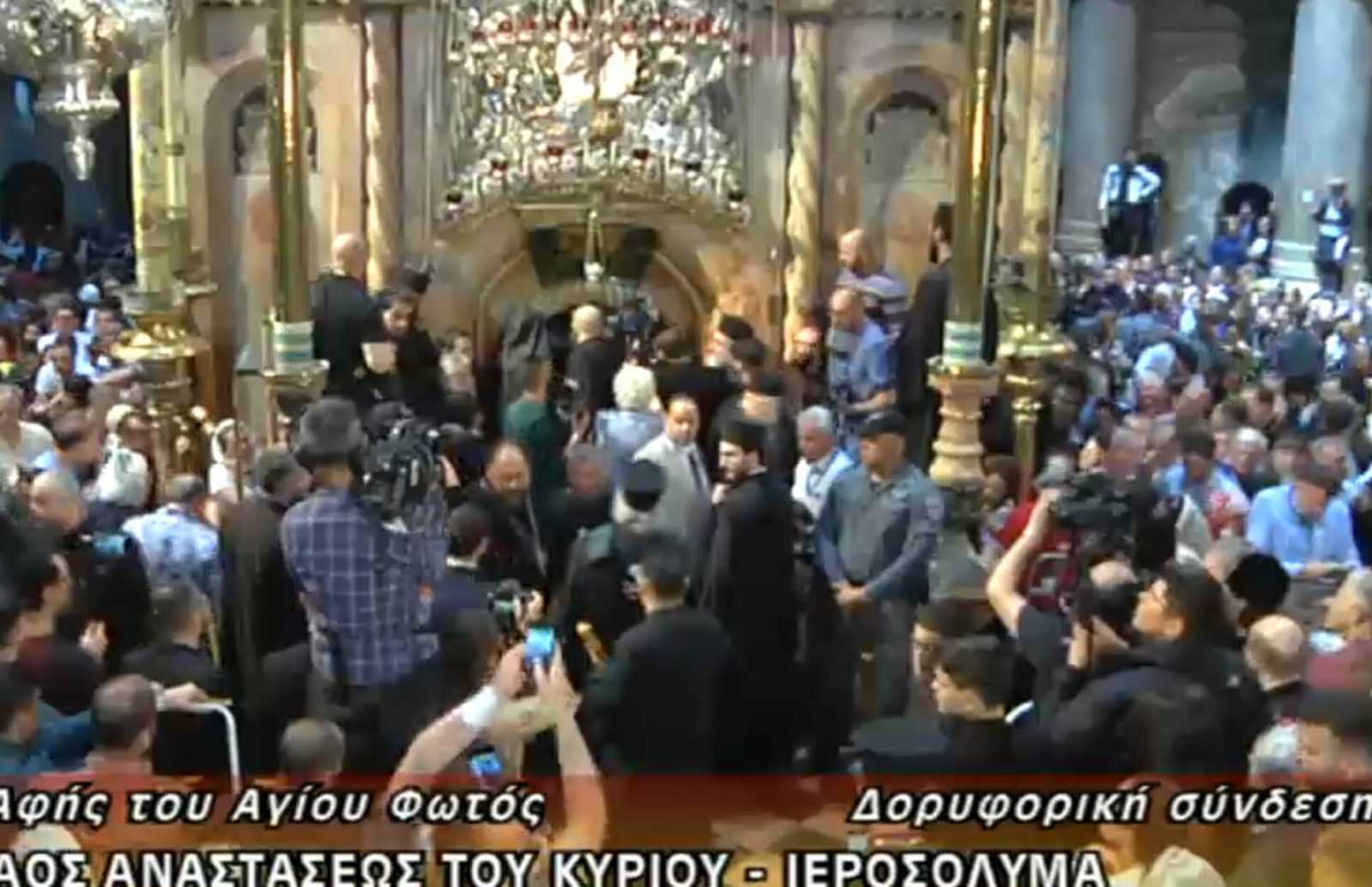 Στα Ιεροσόλυμα βρίσκεται και η ελληνική αποστολή, με επικεφαλής τον υφυπουργό Εξωτερικών Μάρκο Μπόλαρη, προκειμένου να παραστεί στην τελετή και εν συνεχεία να παραλάβει και να μεταφέρει το Άγιο Φως στην Ελλάδα. Δείτε ζωντανά την τελετή
