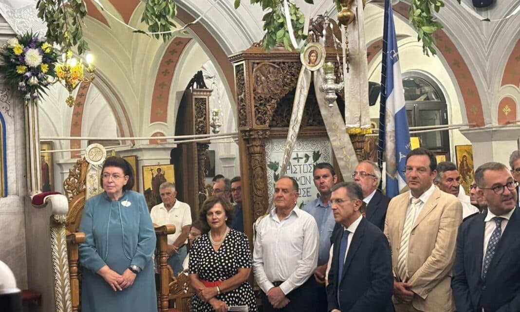 Η Υπουργός παρέστη στον Πανηγυρικό Εσπερινό, της 5ης Αυγούστου, στον Ιερό Ναό Μεταμορφώσεως του Σωτήρος, στο Πυθαγόρειο, χοροστατούντος του Σεβασμιότατου Μητροπολίτη Σάμου, Ικαρίας και Κορσεών κκ. Ευσεβίου και στη λιτάνευση Ιεράς Εικόνας της Μεταμορφώσεως του Σωτήρος, ενώ παρακολούθησε στο λιμάνι, με πλήθος κόσμου και τις στρατιωτικές και πολιτικές αρχές, την αναπαράσταση της ιστορικής ναυμαχίας της Μυκάλης, στις 5 Αυγούστου 1824. Ανήμερα της 6ης Αυγούστου εορτής της Μεταμορφώσεως του Σωτήρος, κατά την επίσημη δοξολογία, ο Μητροπολίτης Ευσέβιος απένειμε στη Λίνα Μενδώνη την ανώτατη τιμητική διάκριση της Μητροπόλεως Σάμου, Ικαρίας και Κορσεών, τον χρυσό σταυρό με την εικόνα του Παντοκράτορος, ως ένδειξη ευγνωμοσύνης για την προσφορά της στην ανάδειξη της πολιτιστικής κληρονομιάς, του νησιού. Ακολούθως η Υπουργός κατέθεσε στεφάνι στο άγαλμα του Λυκούργου Λογοθέτη, μέλους της Φιλικής Εταιρείας και ηγετικής φυσιογνωμίας της Ελληνικής Επανάστασης, o οποίος ανήγειρε τον ιστορικό ναό της Μεταμορφώσεως του Σωτήρος, στο Κάστρο του Πυθαγορείου, σε ανάμνηση της νίκης και της σωτηρίας των Σαμίων, στη ναυμαχία των στενών της Μυκάλης, το 1824.