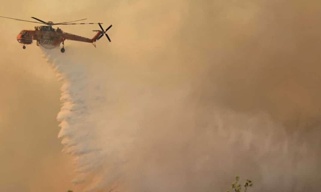 Στο έργο της κατάσβεσης συμμετέχουν 3 εναέρια μέσα