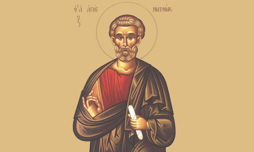 Μετά την προδοσία και τον απαγχονισμό του Ιούδα και μετά την Ανάληψη του Κυρίου, οι έντεκα μαθητές με την Παναγία βρίσκονταν στο υπερώον. Τότε ο Πέτρος πρότεινε να εκλεγεί άλλος αντί του Ιούδα, από τους άνδρες που ακολουθούσαν υπηρετώντας το Χριστό. Η πρόταση έγινε δεκτή και τέθηκαν δύο υποψήφιοι: ο Ιωσήφ ο καλούμενος Βαρσαββάς και ο Ματθίας. Τότε έβαλαν κλήρο, και δίνοντας σε όλους εμάς παράδειγμα εναπόθεσης κάθε εκλογής μας στο Θεό, προσευχήθηκαν όλοι μαζί ως εξής: «Σὺ Κύριε, καρδιογνῶστα πάντων, ἀνάδειξαν ὃν ἐξελέξω ἐκ τούτων τῶν δυὸ ἕνα, λαβεῖν τὸν κλῆρον τῆς διακονίας ταύτης καὶ ἀποστολῆς» (Πράξεις των Αποστόλων, α’ 23-26). Δηλαδή: Συ Κύριε, που γνωρίζεις τις καρδιές όλων, φανέρωσε καθαρά εκείνον που εξέλεξες, ένα από αυτούς τους δύο, για να επωμισθεί το αξίωμα της αποστολικής διακονίας. Στη συνέχεια ο κλήρος έπεσε στο Ματθία. Και έτσι προστέθηκε στους έντεκα Αποστόλους.