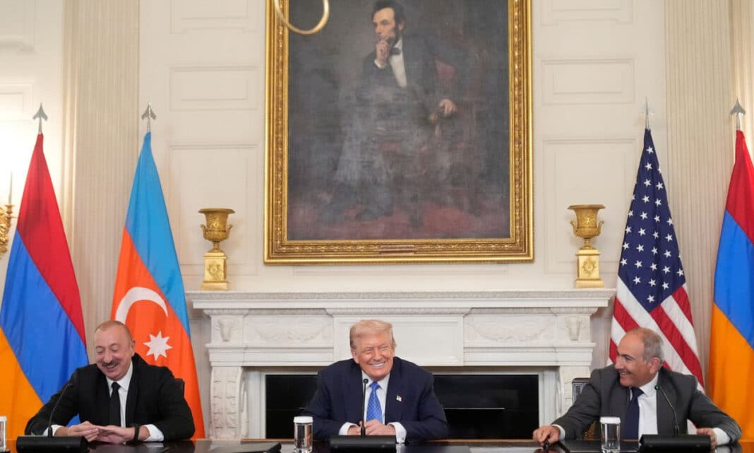 Πλάι στον Ντόναλντ Τραμπ στον Λευκό Οίκο, ο Αζέρος πρόεδρος Ιλχάμ Αλίεφ και ο Αρμένιος πρωθυπουργός Νικόλ Πασινιάν δήλωσαν ότι η μεσολάβηση του Αμερικανού προέδρου, που αρέσκεται στις τιμές και στις διακρίσεις, θα πρέπει να του εξασφαλίσει το βραβείο Νόμπελ Ειρήνης.