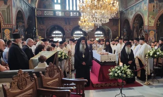 Παρέστησαν οι τοπικές πολιτικές, αυτοδιοικητικές και στρατιωτικές Αρχές, καθώς και πλήθος πιστών για να αποχαιρετίσουν τον μακαριστό μητροπολίτη τους, που ύστερα από πολύμηνη ασθένεια εκοιμήθη το βράδυ της Πέμπτης, 7 Αυγούστου, σε ηλικία 73 ετών.