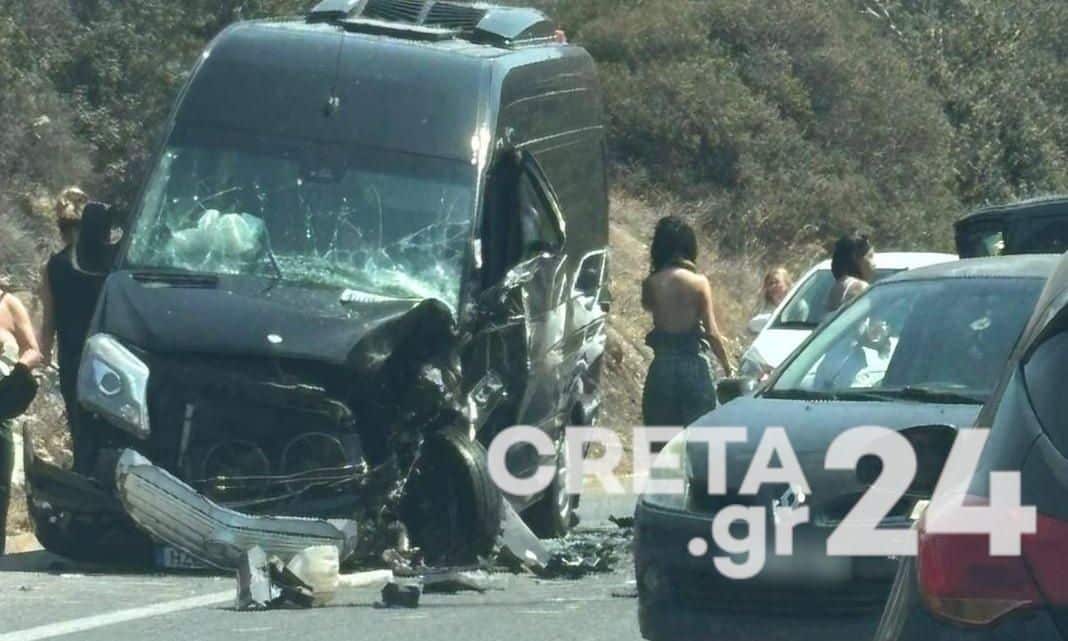 Στα μίνι βαν επέβαιναν οικογένειες με μικρά παιδία – Χρειάστηκε απεγκλωβισμός του τραυματία
