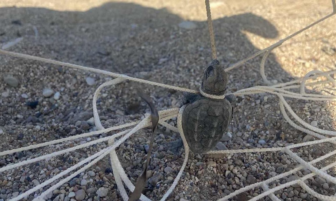 Ένα μικρό θαλάσσιο χελωνάκι εντοπίστηκε νεκρό σε παραλία ωοτοκίας, «παγιδευμένο» σε εγκαταλελειμμένο φιλέ beach volley, πριν προλάβει να φτάσει στη θάλασσα.