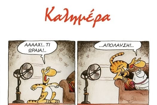Με το γνωστό του χιούμορ, ο Αρκάς σήμερα επιστρατεύει την αγαπημένη Λουκρητία η οποία ζεσταίνεται και χουζουρεύει προσπαθώντας να δροσιστεί με τον ανεμιστήρα.