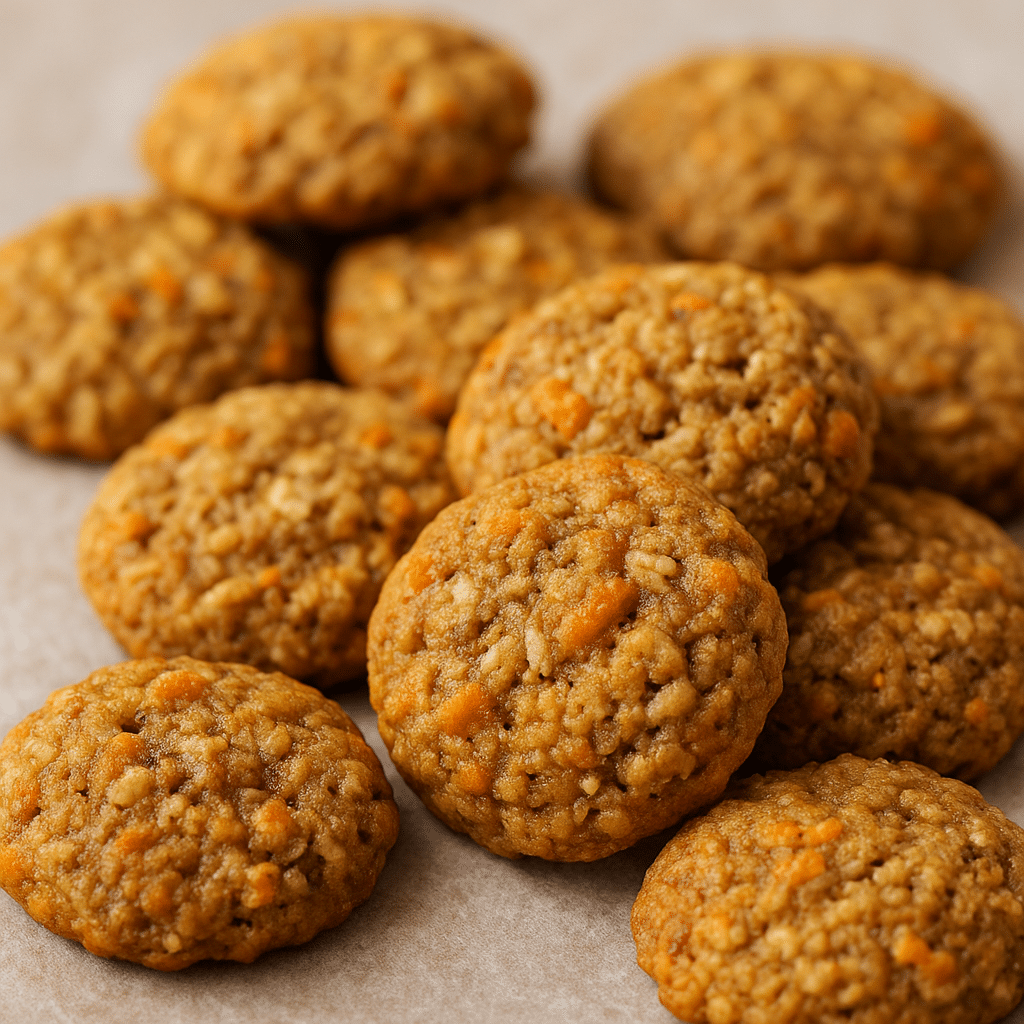 Αφράτα, αρωματικά και γεμάτα θρεπτικά συστατικά, αυτά τα μπισκότα καρότου είναι η τέλεια ισορροπία ανάμεσα στη γλύκα και την υγιεινή απόλαυση. Με φρέσκο τριμμένο καρότο, βρώμη και μια δόση κανέλας, γίνονται ιδανικά για πρωινό, σνακ στο γραφείο ή απογευματινό συνοδευτικό του καφέ.