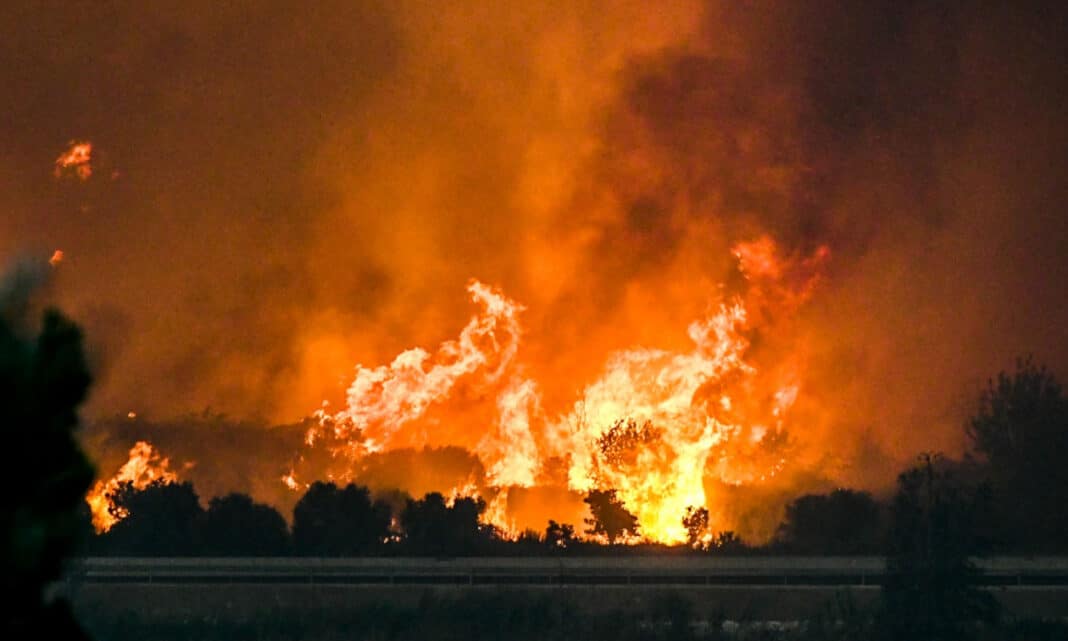Η ανεξέλεγκτη πυρκαγιά που μαίνεται στη Δυτική Αχαΐα έφτασε στον οικισμό των Τσουκαλέικων και καίει σε αυλές σπιτιών.