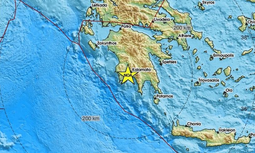 Το ακριβές επίκεντρο της δόνησης εντοπίζεται, στα 15 χλμ. νότια – νοτιοδυτικά της Καλαμάτας.