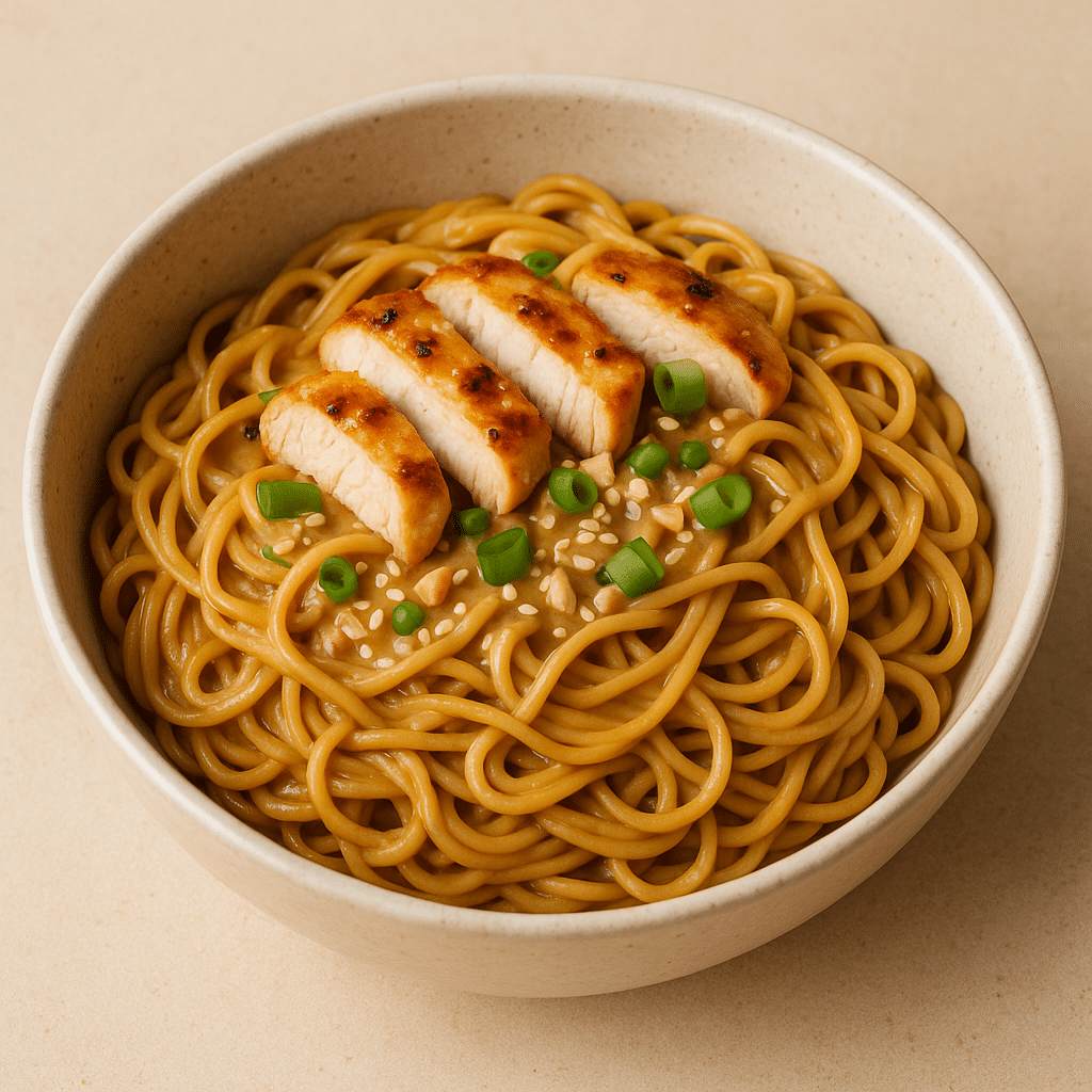 Αν λατρεύετε τις ασιατικές γεύσεις και θέλετε ένα γρήγορο αλλά απολαυστικό γεύμα, αυτή η συνταγή θα σας ξετρελάνει! Μαλακά noodles, ζουμερό κοτόπουλο και μια βελούδινη, αρωματική σάλτσα φυστικοβούτυρου δημιουργούν έναν τέλειο συνδυασμό γλυκού, αλμυρού και ελαφρώς πικάντικου.