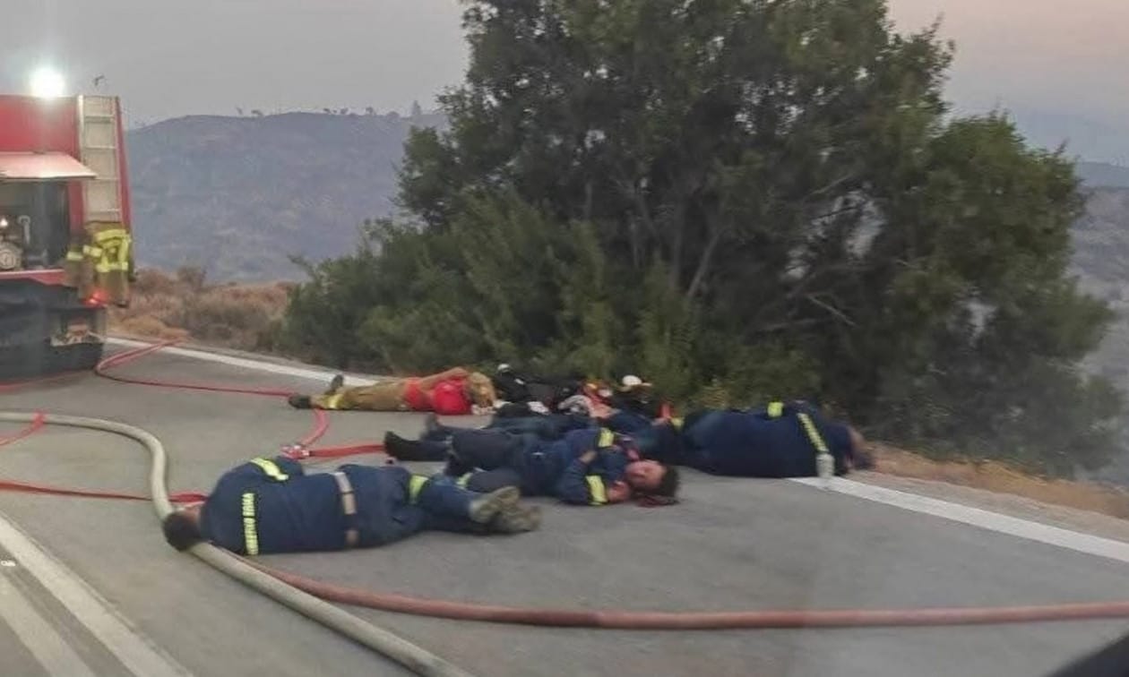 Το Fire Fighting Greece δημοσίευσε μια φωτογραφία από τους αποκαμωμένους πυροσβέστες και απεικονίζει πλήρως την υπεράνθρωπη προσπάθεια που καταβάλλεται.