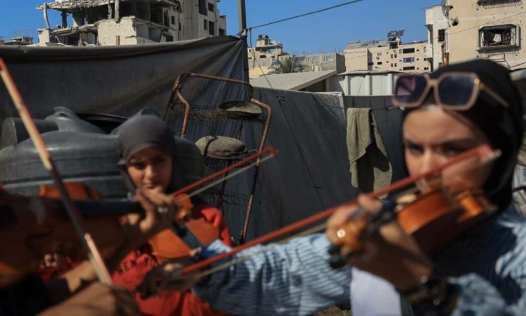 Οι νεαροί μαθητές συμμετείχαν σε ένα μάθημα που έδωσαν στις 4 Αυγούστου καθηγητές από το Εθνικό Ωδείο Μουσικής Edward Said, οι οποίοι συνέχισαν τα μαθήματα σε στρατόπεδα εκτοπισμένων και κατεστραμμένα κτήρια ακόμη και μετά τους βομβαρδισμούς του Ισραήλ που τους ανάγκασαν να εγκαταλείψουν την έδρα τους στην πόλη.